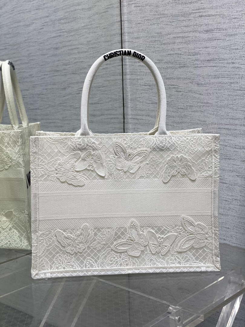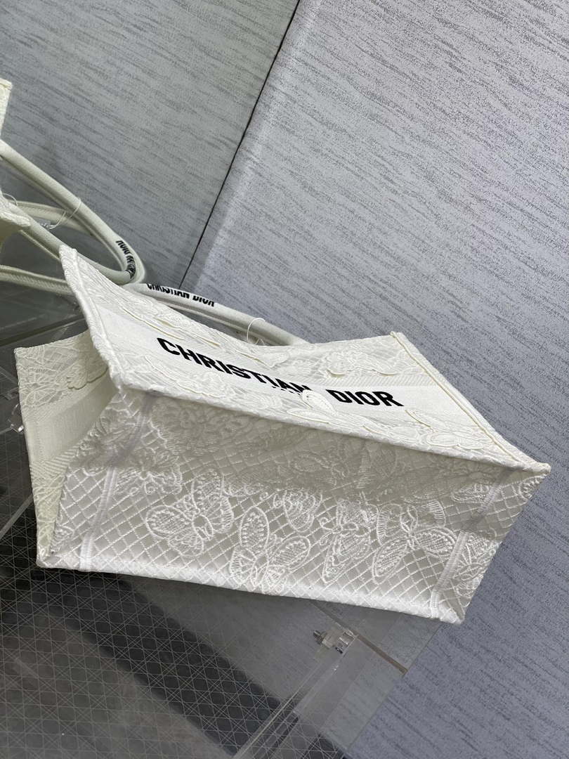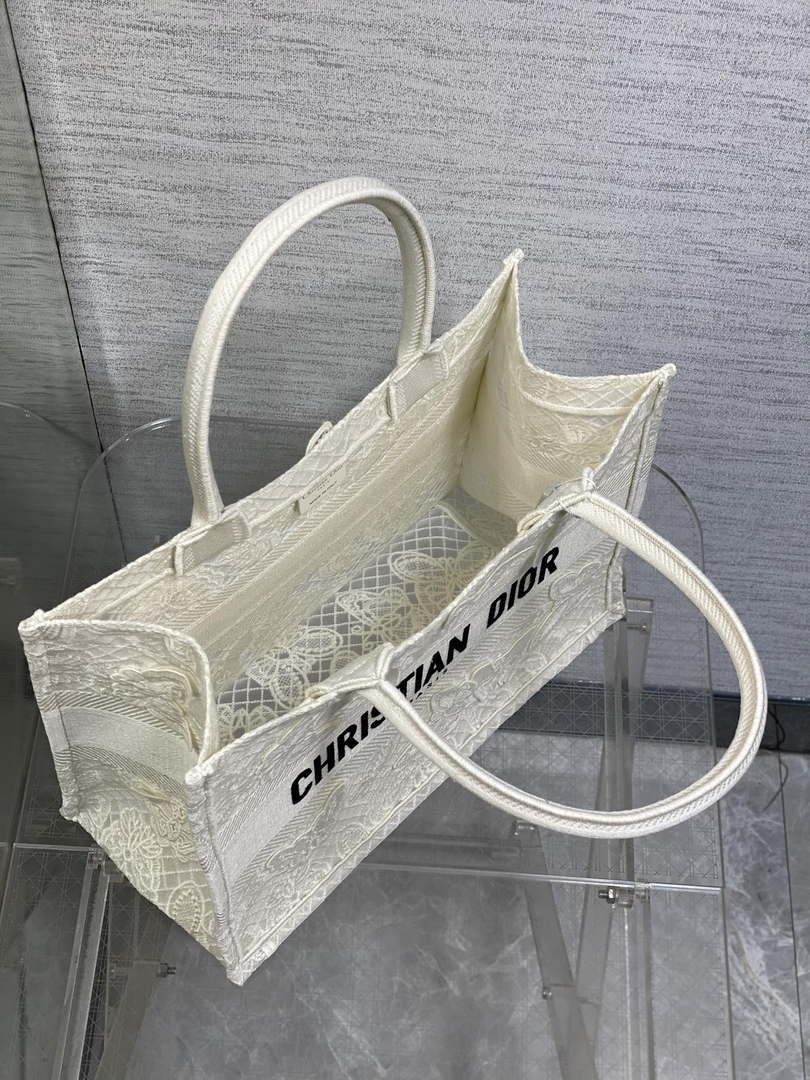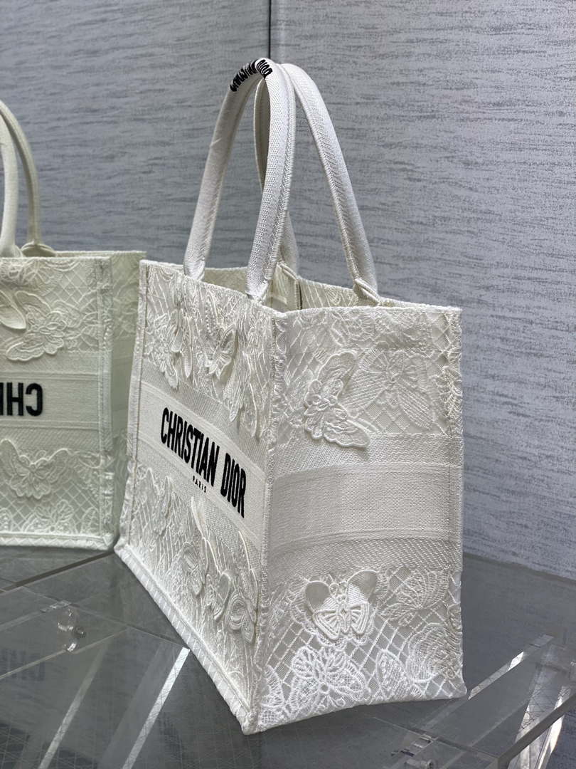 Introduced by Maria Grazia Chiuri, Creative Director of Christian D1or, the D1or Book Tote has become a staple of the D1or aesthetic. Designed to hold all the daily essentials, the style is fully embroidered with a black and white Butterfly Bandana motif, combining the butterfly with the timeless bandana pattern in a graphic spirit. Adorned with the Christian D1or Paris signature on the front, the medium tote exemplifies the House’s signature savoir-faire and may be carried by hand or worn over the shoulder.