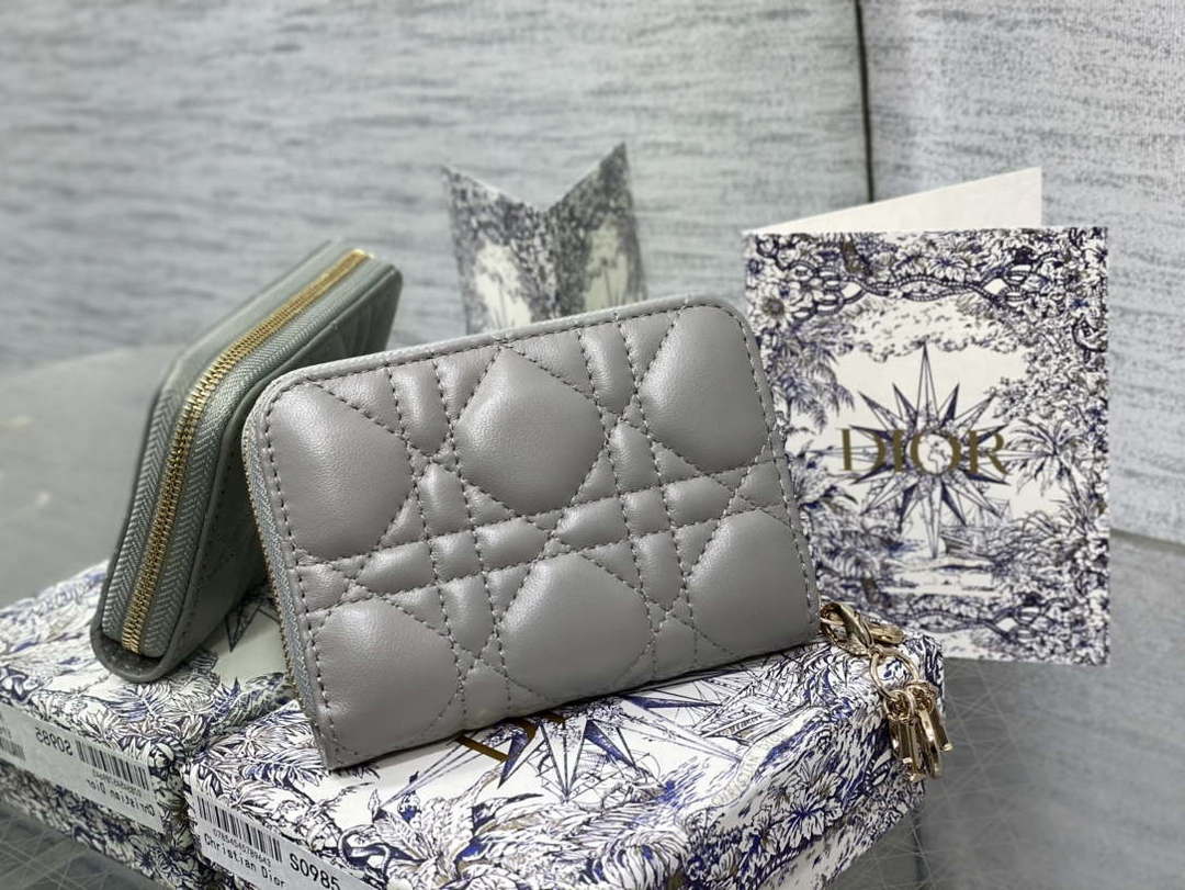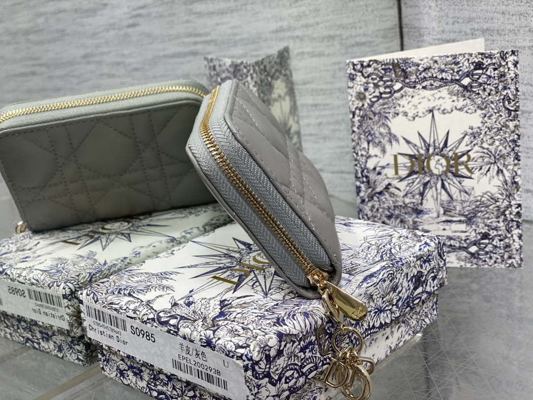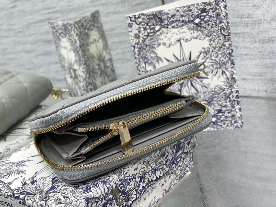 D1or S0011 Lady D1or Zipper Card Holder Medium Apricot Cannage Lambskin