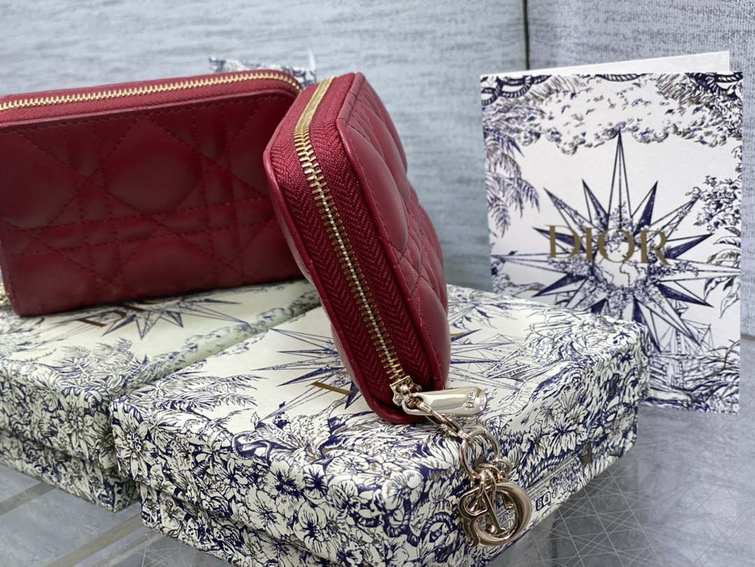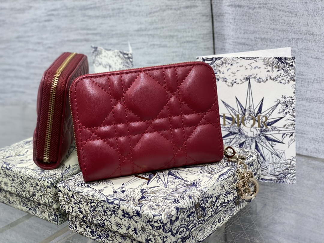 D1or S0011 Lady D1or Zipper Card Holder Medium Wine Red Cannage Lambskin