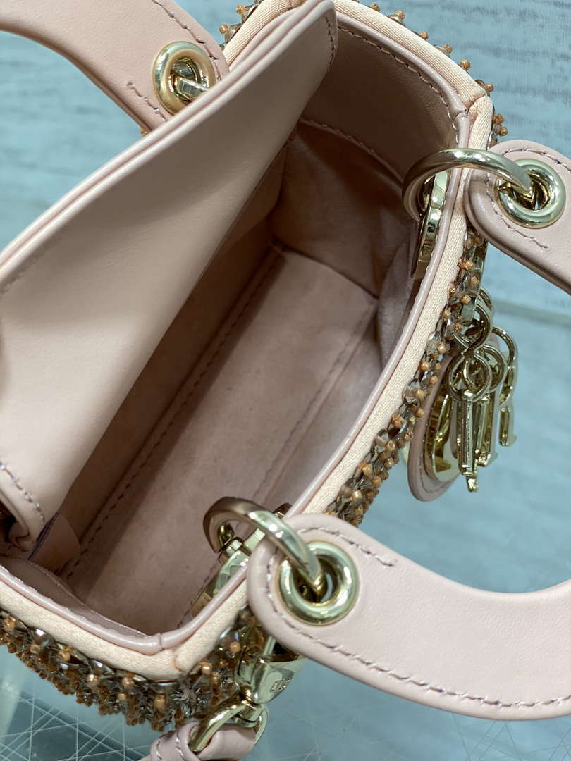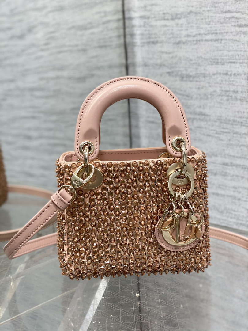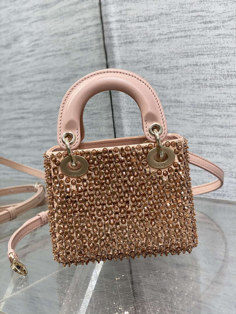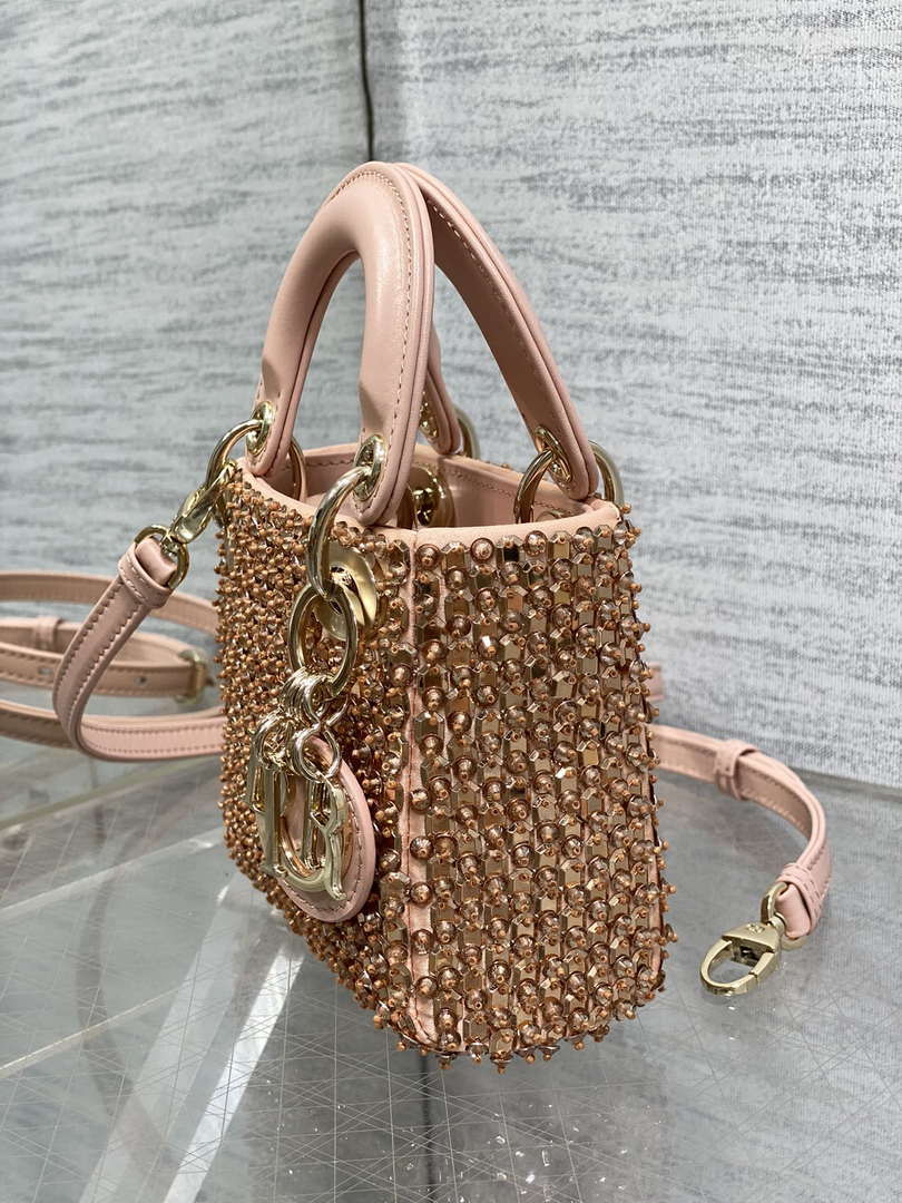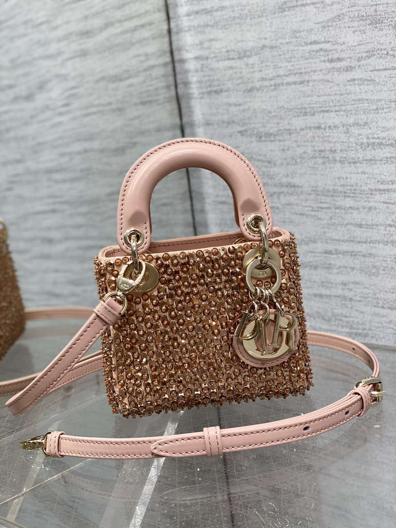 D1or S0856 MICRO LADY BAG Limited edition handmade beads Lambskin Pink