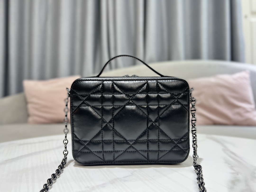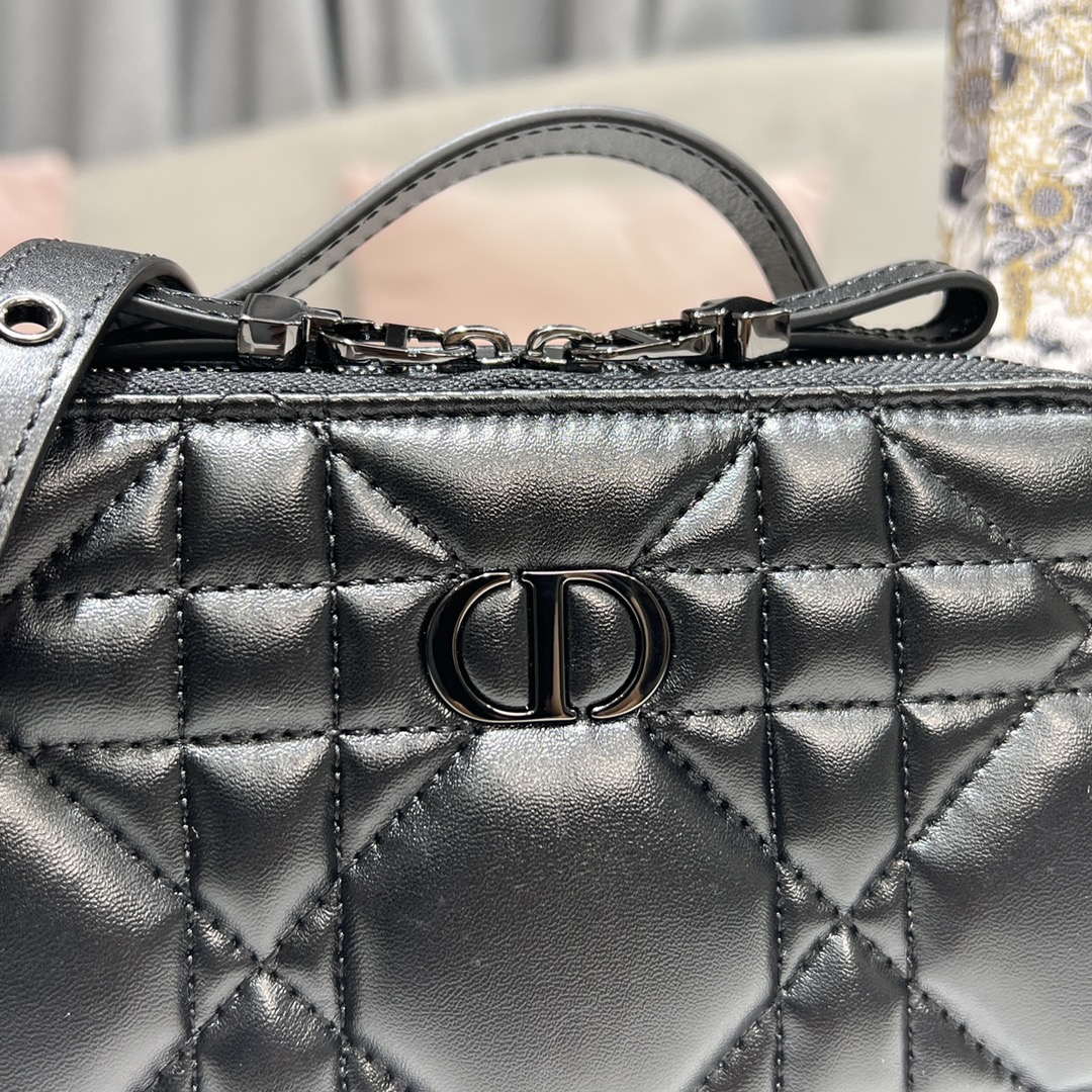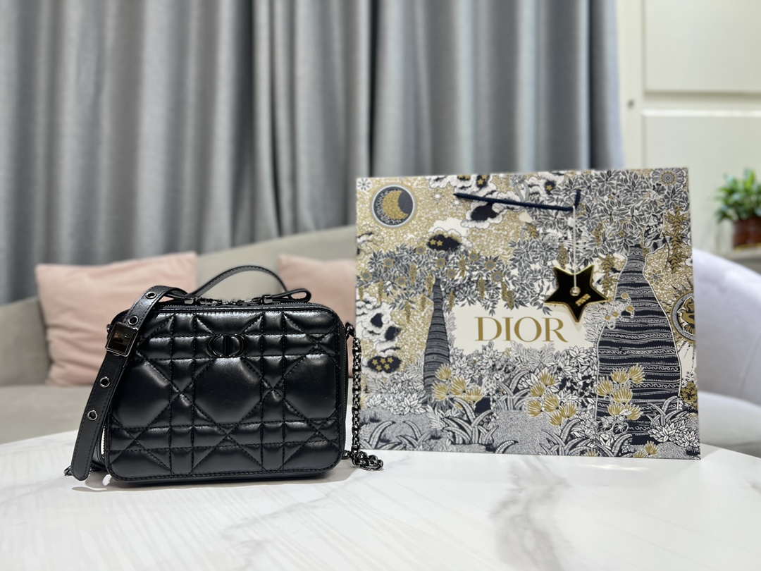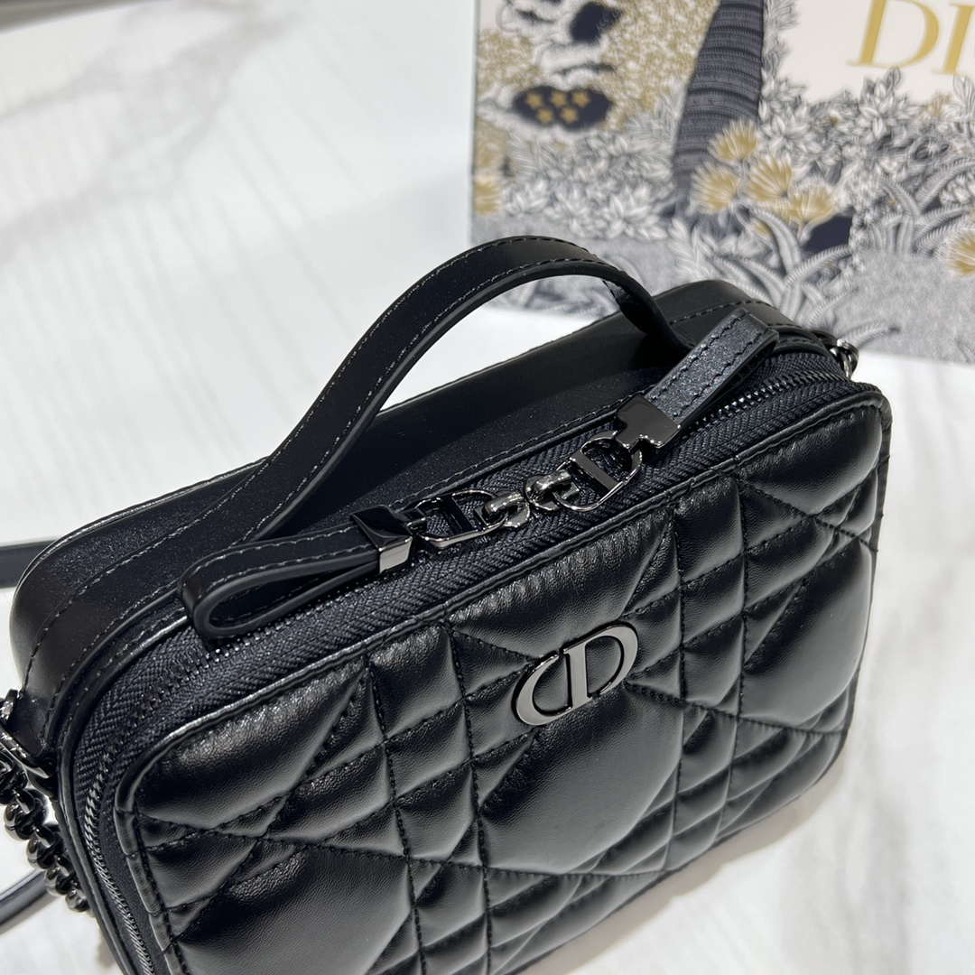 D1or S5140 Caro Box Bag Black Quilted Macrocannage Calfskin