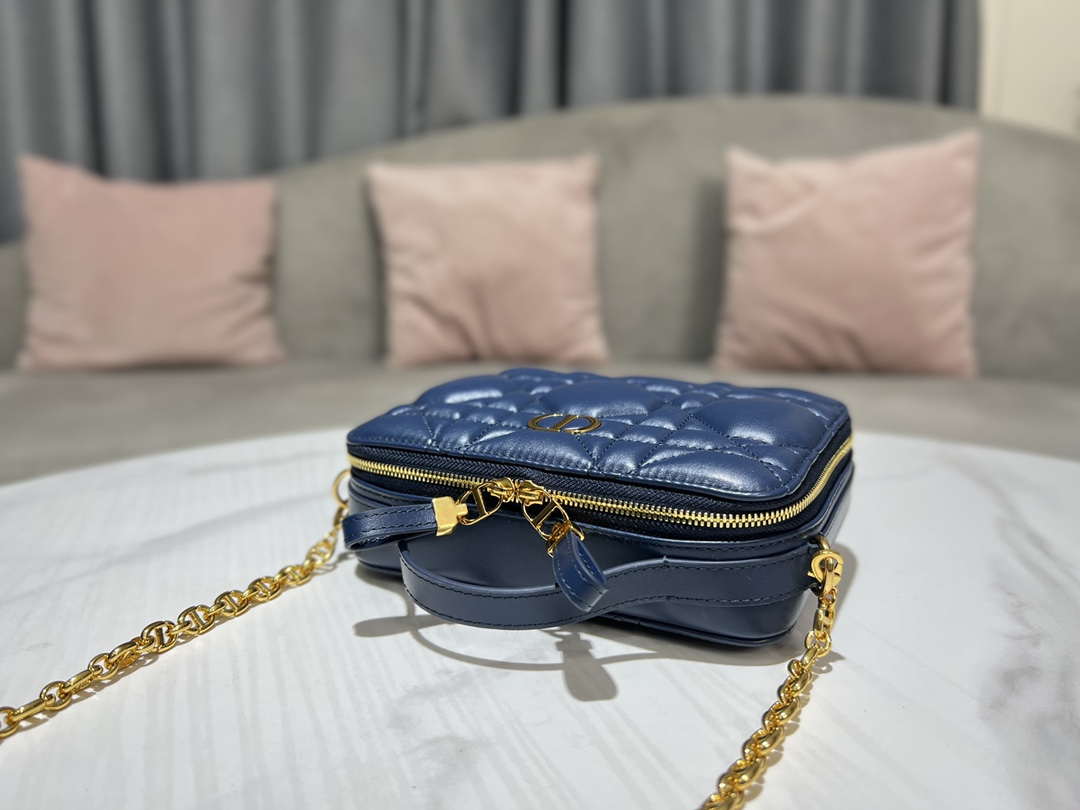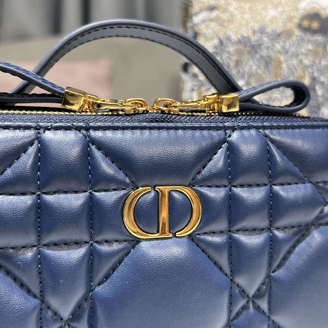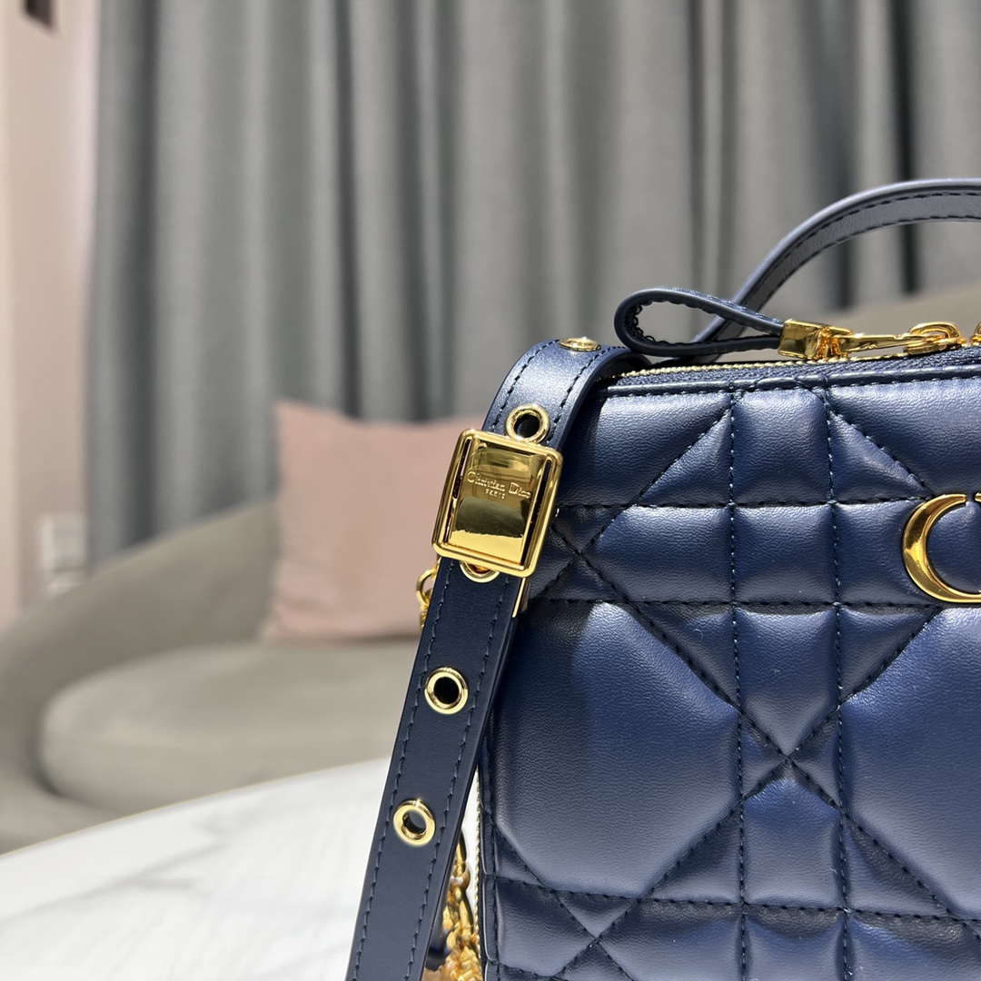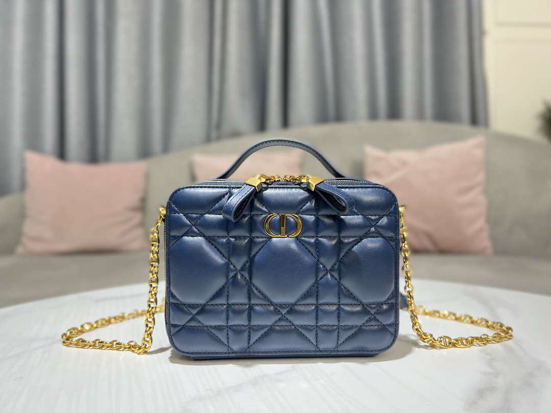 D1or S5140 Caro Box Bag Blue Quilted Macrocannage Calfskin