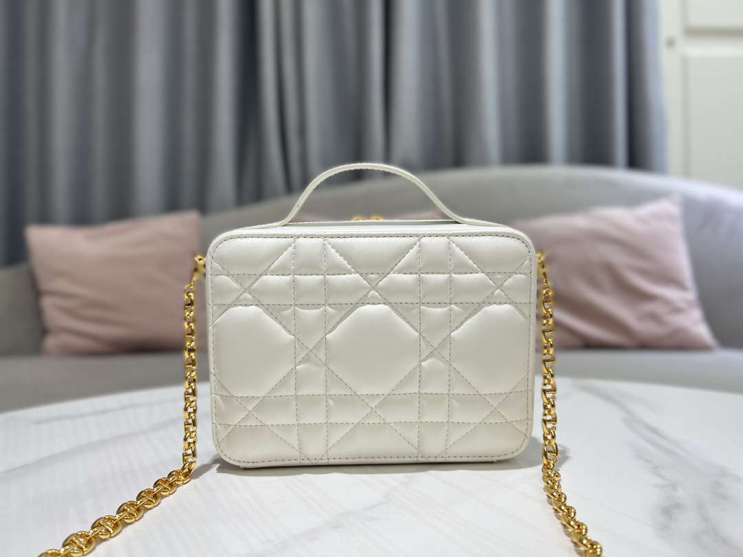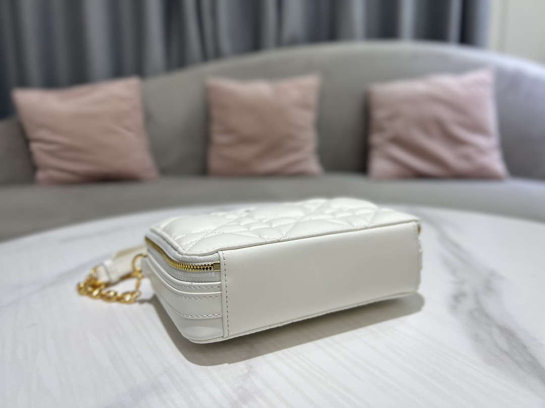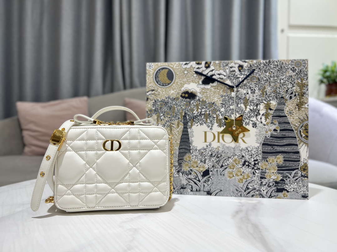 D1or S5140 Caro Box Bag White Quilted Macrocannage Calfskin
