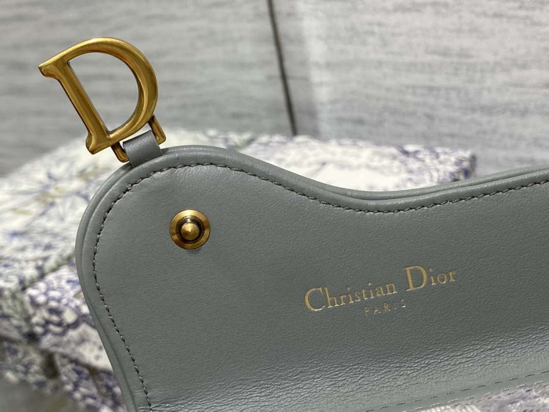 D1or S5611 Saddle Flap Card Holder Blue Grained Calfskin