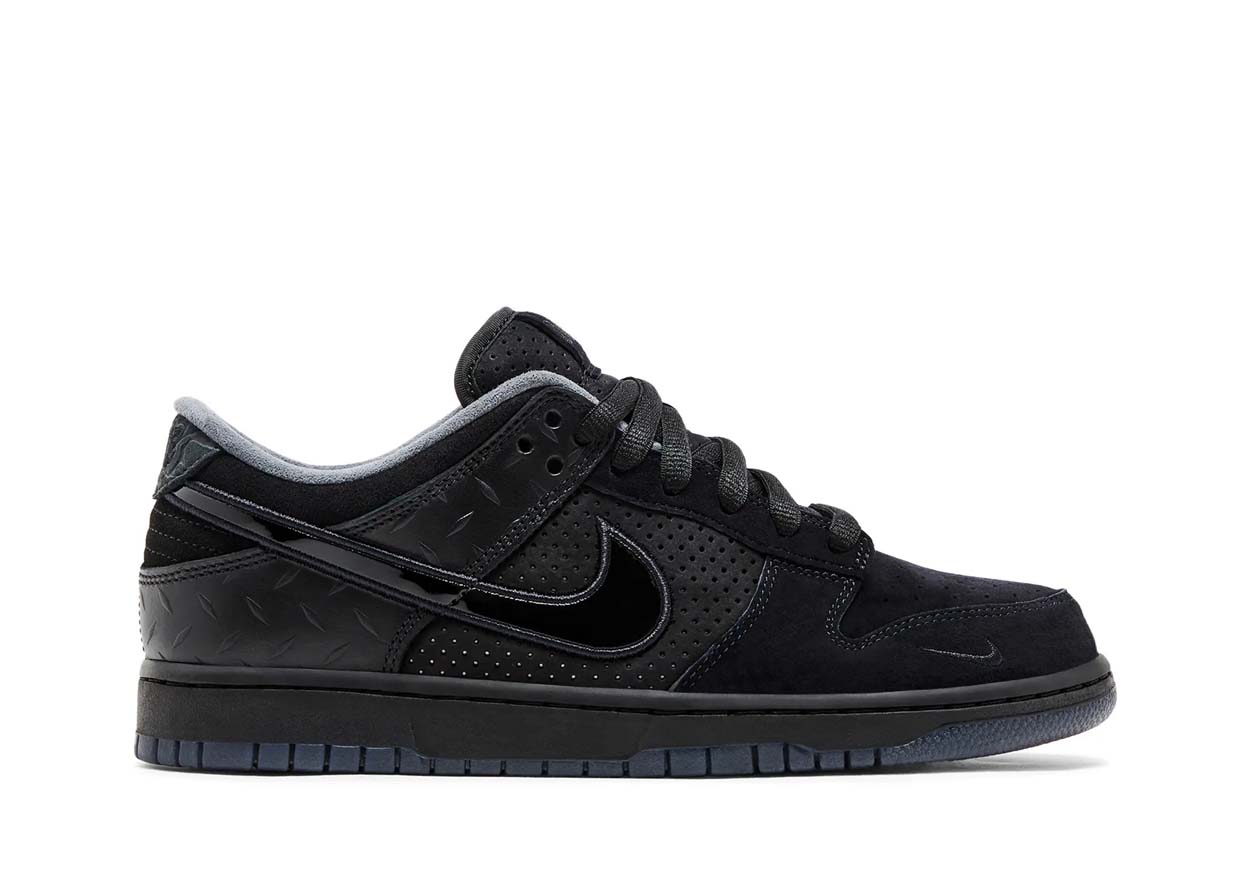 The Dunk Low ‘What the Duck – University of Oregon Alternate’ PE honors University of Oregon football’s tradition of wearing unique uniforms every game. The sneakers are reimagined with an all-over black treatment, inspired by Oregon’s intensity, power and performance on the field. Details include suede overlays, full-grain leather heel panels, elephant print on the heel tab, and patent leather midfoot Swoosh branding. Created in partnership with Division Street’s Ducks of a Feather, “DOAF” branding lands on the left heel tab, right tongue tag and clear outsole.