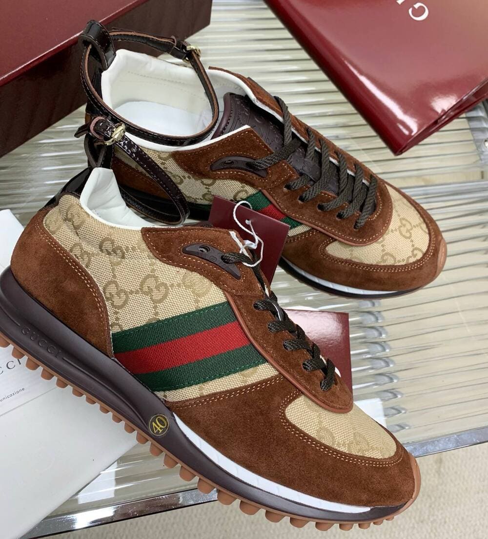 - Tongue with 3D Gucci script logo and Interlocking G, created with a high-frequency embossing process