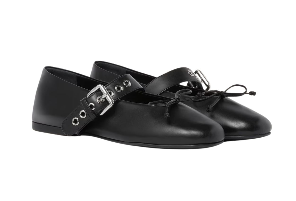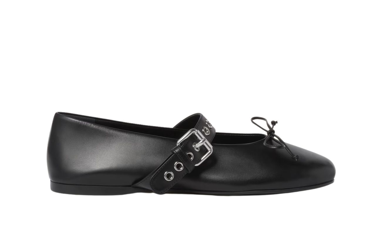 Smooth leather highlights the nuances and details of these leather ballerinas. The buckle and bow introduce a refined stylistic contrast while the Miu Miu logo adds its signature to this stylish version.