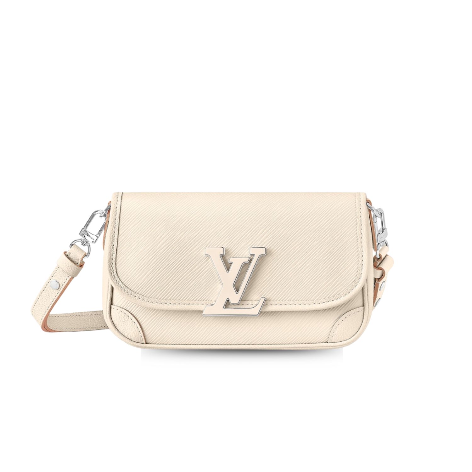 • Front flap with decorative LV resin ornament, magnetic closure.