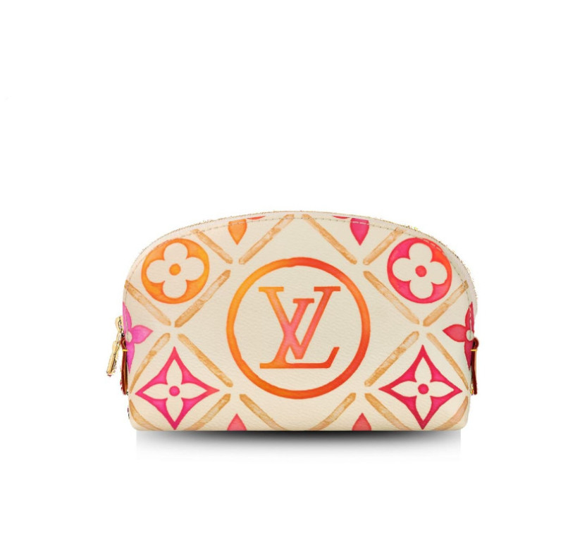 • Sized to fit into almost any bag, the Pochette Cosmétique PM is made from Monogram Tiles coated canvas, with its watercolor treatment of the colorful Monogram. The summery colorway, and LV Circle at the center of the pouch, give it a glamorous feel. The washable lining and zip closure make it extra functional.