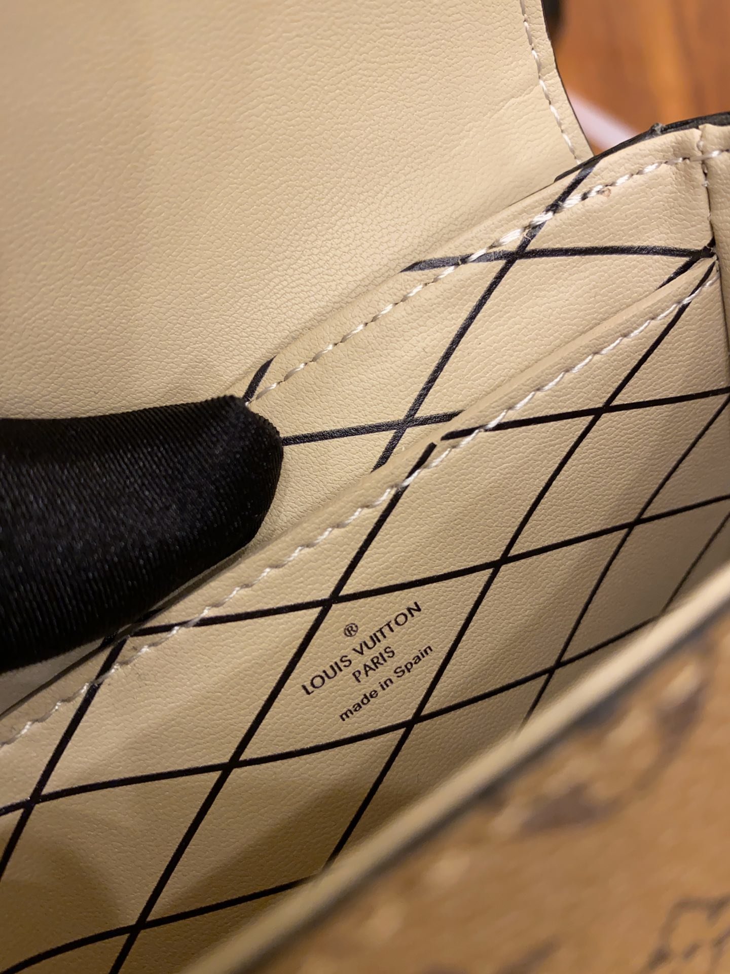 • Monogram coated canvas trim.