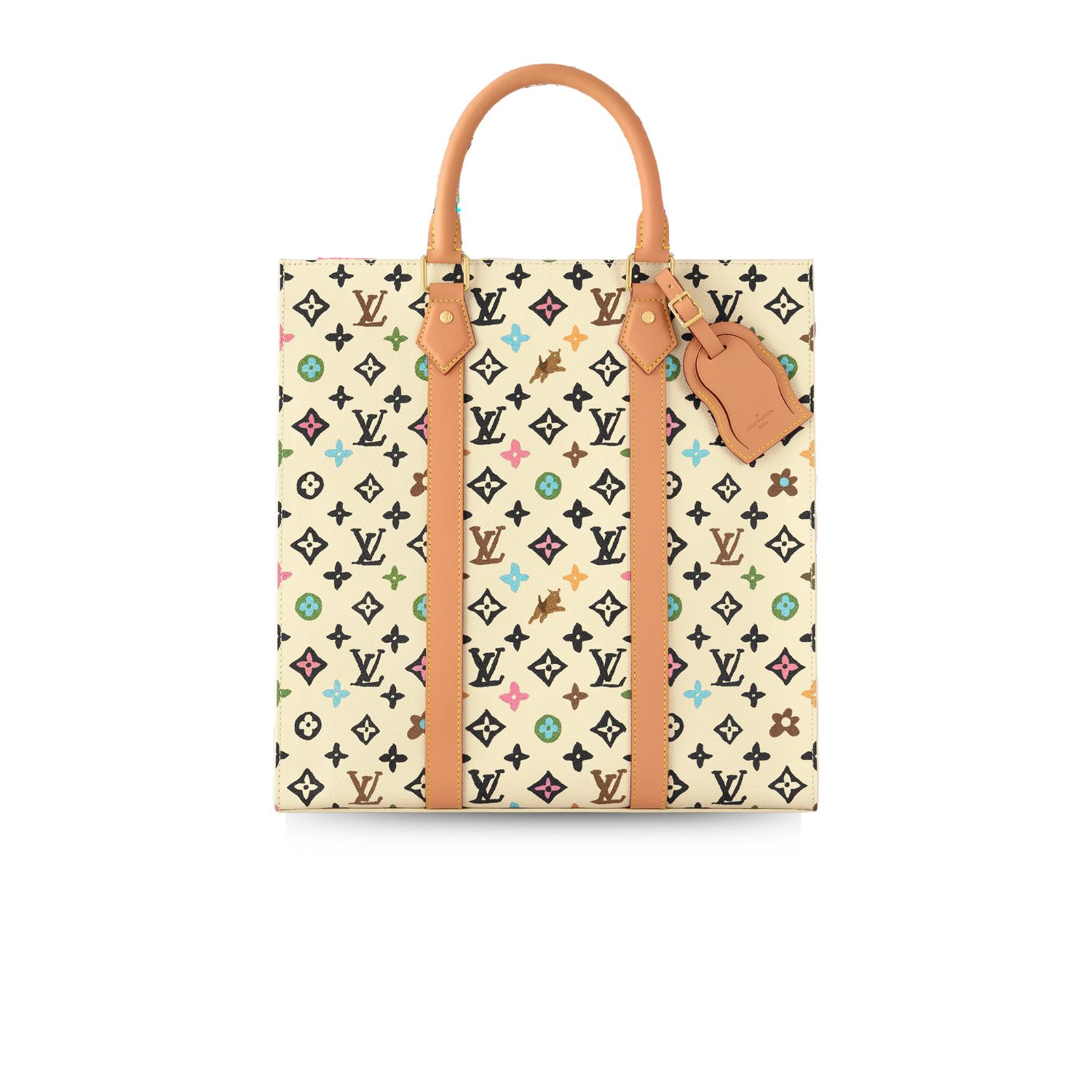 • The Sac Plat carryall takes on a playful feel in Monogram Craggy canvas, a hand-drawn variation of the Monogram, imagined by Tyler, that integrates light-hearted flowers and dogs into the pattern. The trims are, including the wavy name tag. Two top handles and a removable shoulder strap give multiple carry options.