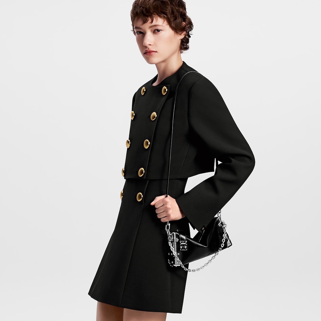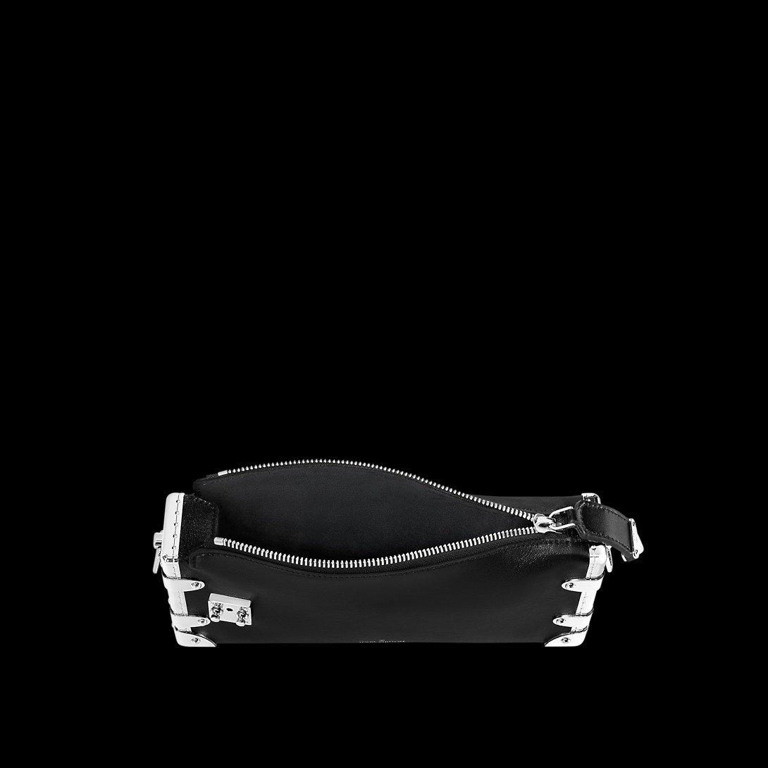 The Slim trunk is a fashion-forward piece that takes its design cues from LV’s historic trunks. Crafted from extremely supple leather, it is embellished with a riveted frame and S-lock in silver-tone metal, giving it a rock’n’roll vibe. This model offers different carry options thanks to its removable chain and removable, adjustable leather strap.