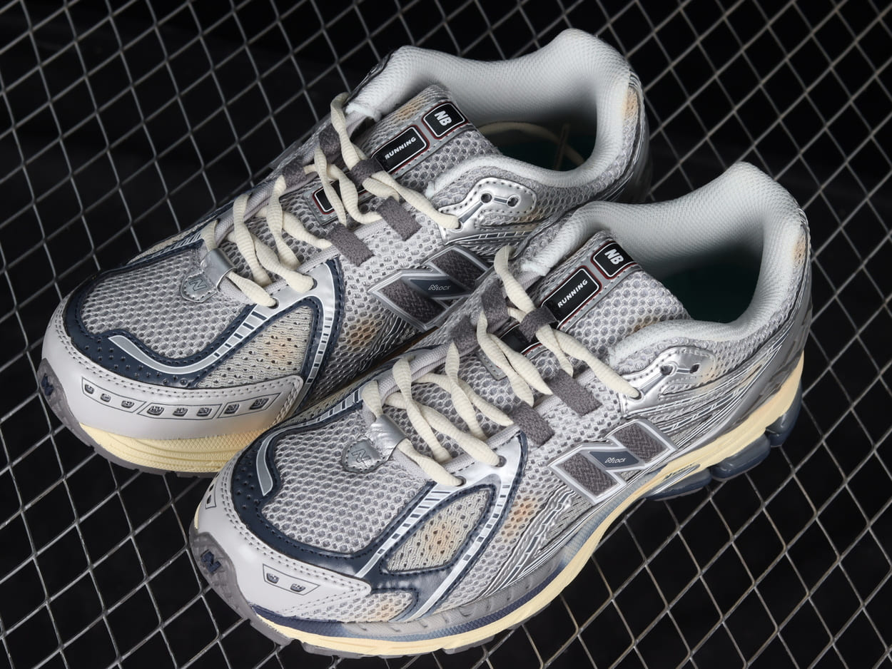 ​A sculpted heel counter and strong synthetic overlay with a metallic silver finish strengthen the light structure of the New Balance 1906R. Webbing straps are incorporated into the laces to give the impression of stability. It also displays a plush tongue and quilted collar. With each step, an N-ergy midsole that is pre-yellowed provides some cushioning.