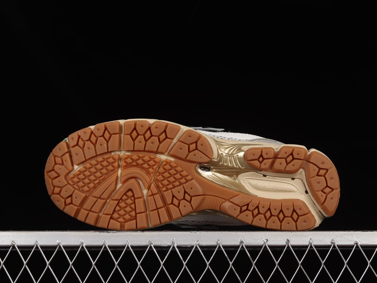 While the rest of the shoe is accentuated in light grey, the midsole is cream, and the outsole is gum for a classic look. The green woven laces are interlaced with the distinctive “N” emblem on its lateral side, and a light grey TPU cage surrounds the heel. The cream N-ERGY unit beneath the foot is adorned with further green embellishments, and this is lined with a good amount of gum rubber, which offers incredible amounts of traction with each stride.