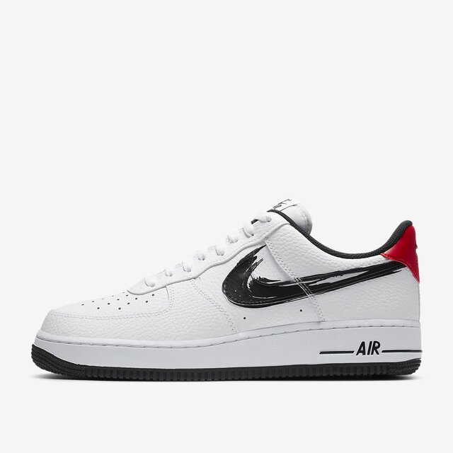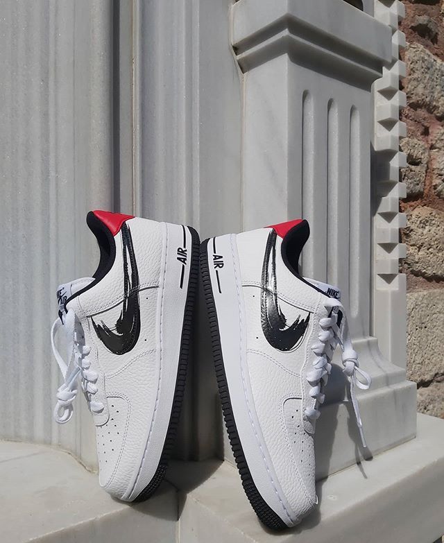 The Nike Air Force 1 Low Brushstroke White Black features a white, black, and Gym Red leather upper with bright white tones acting as the main color base. From there, a black Nike “Swoosh” that looks as though it is painted on gives this AF1 Low its name, and a white “Nike Air” midsole sits on top of a black outsole to complete the design.
