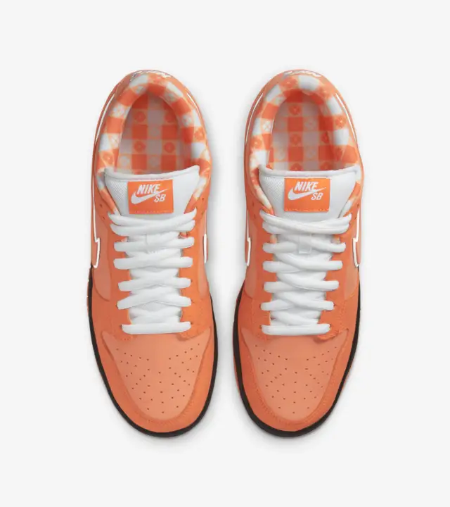The Nike SB Dunk Low Concepts Orange Lobster comes toned in a mixture of three main colors: electro orange, orange frost, and white.