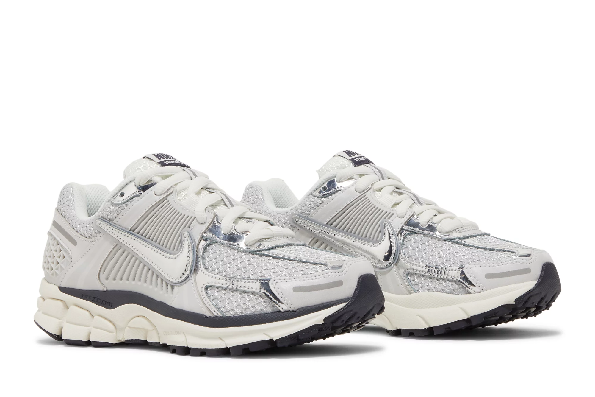 The Nike Zoom Vomero 5 Photon Dust Metallic Silver (W) comes in a Photon Dust, Chrome, Gridiron, and Sail color palette.