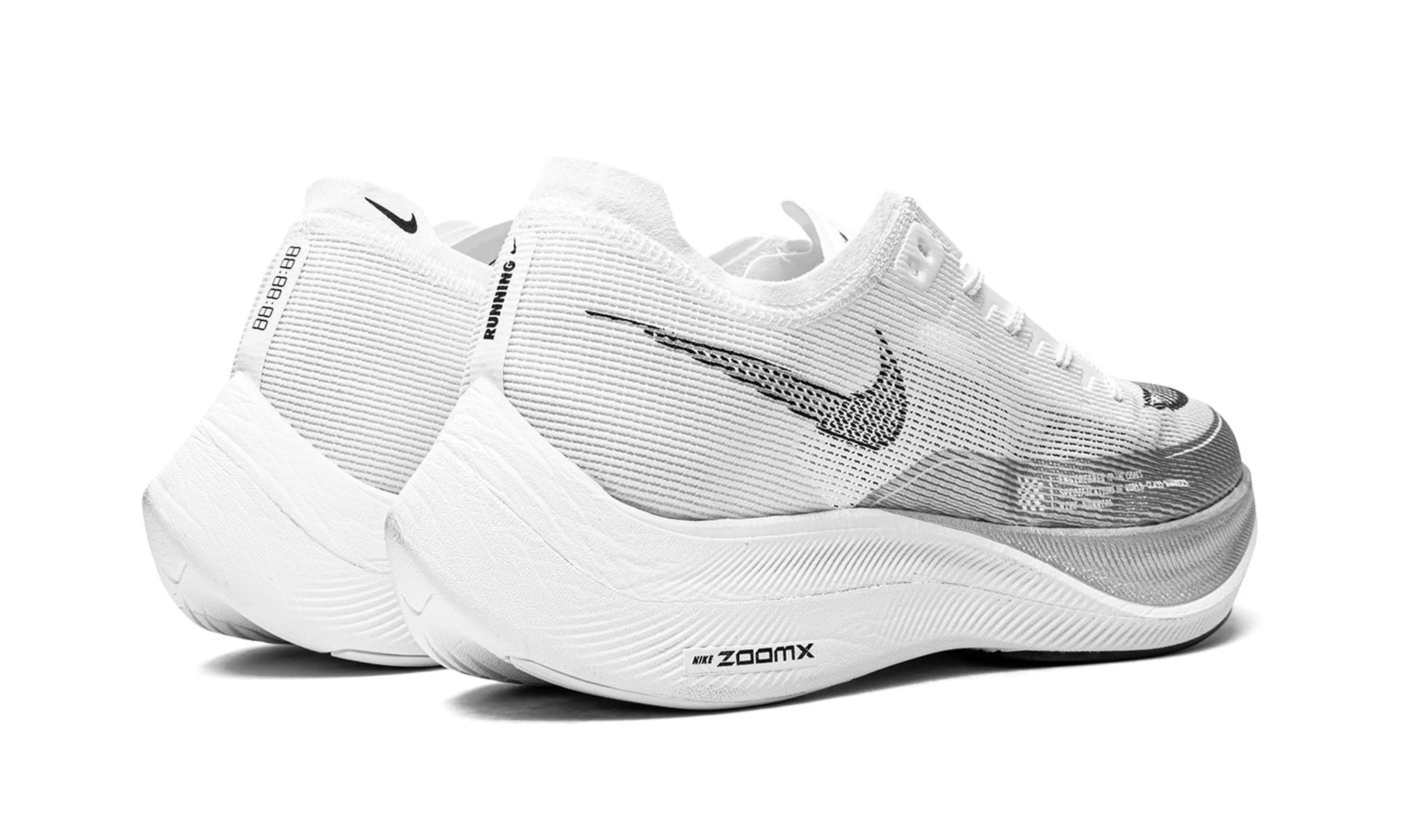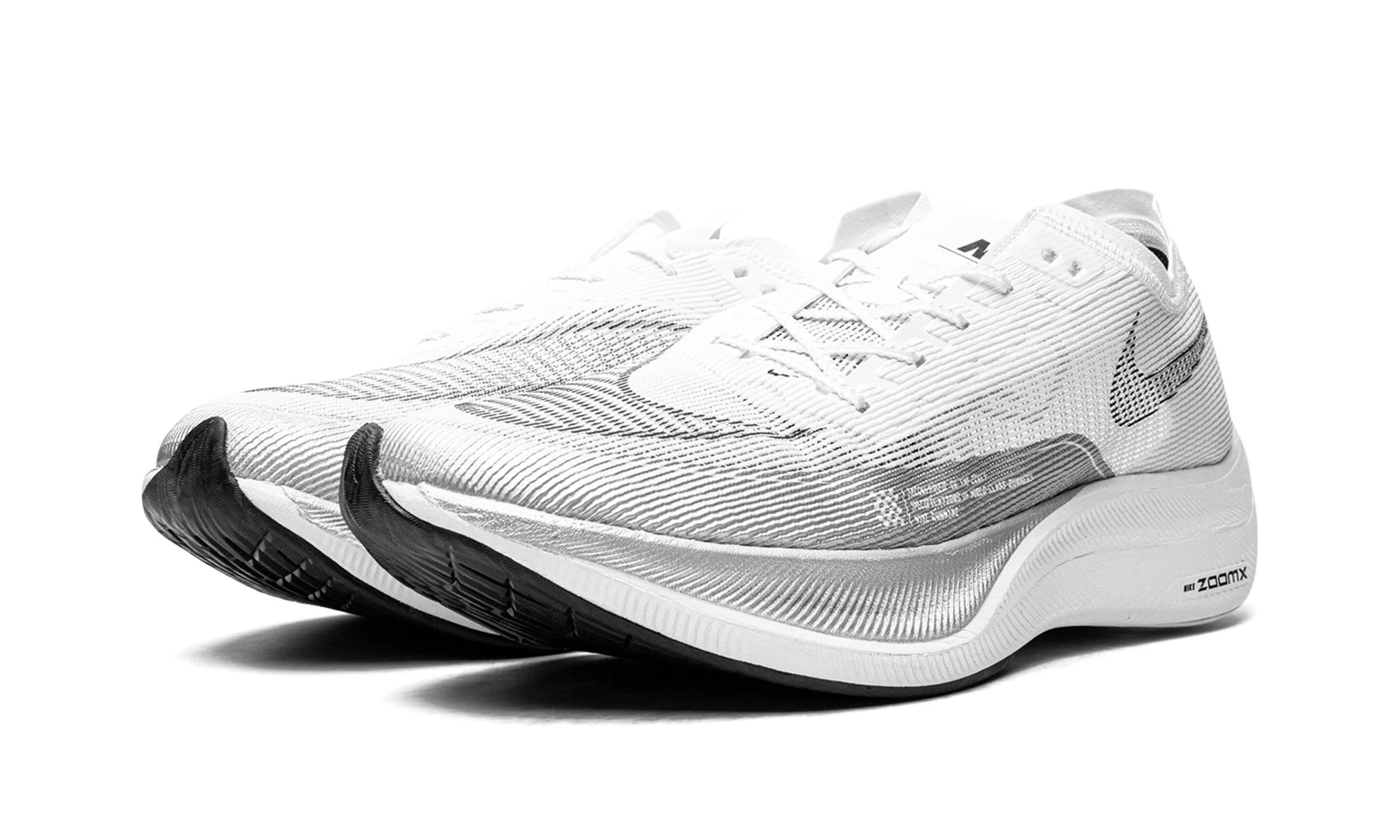 The Nike ZoomX Vaporfly Next 2 White Metallic Silver arrives in a classic color combination of white, metallic silver, and black.
