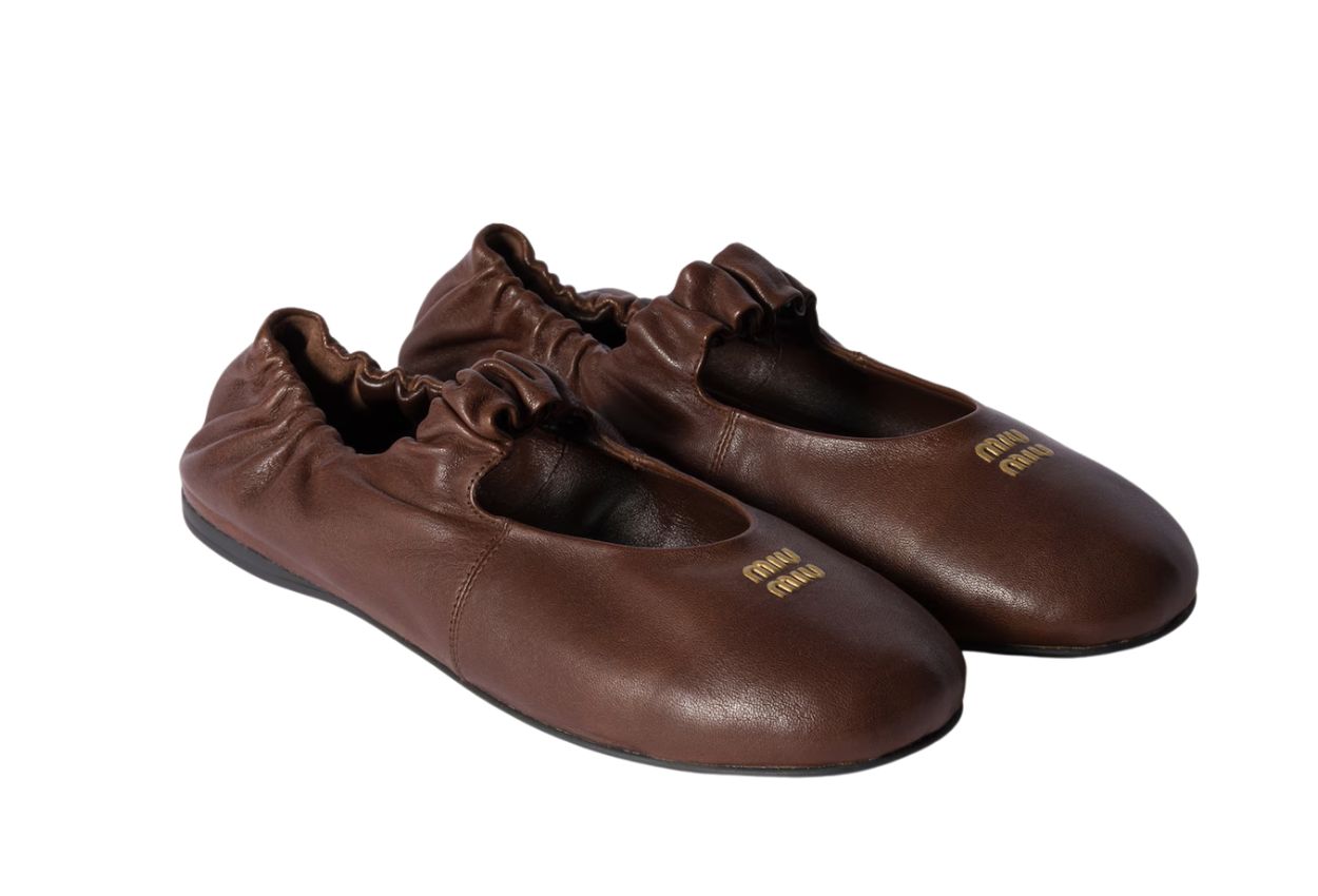 These light ballerina flats with a vintage mood stand out for the special aged treatment of the nappa leather and the distinctive gold-tone logo in contrast.