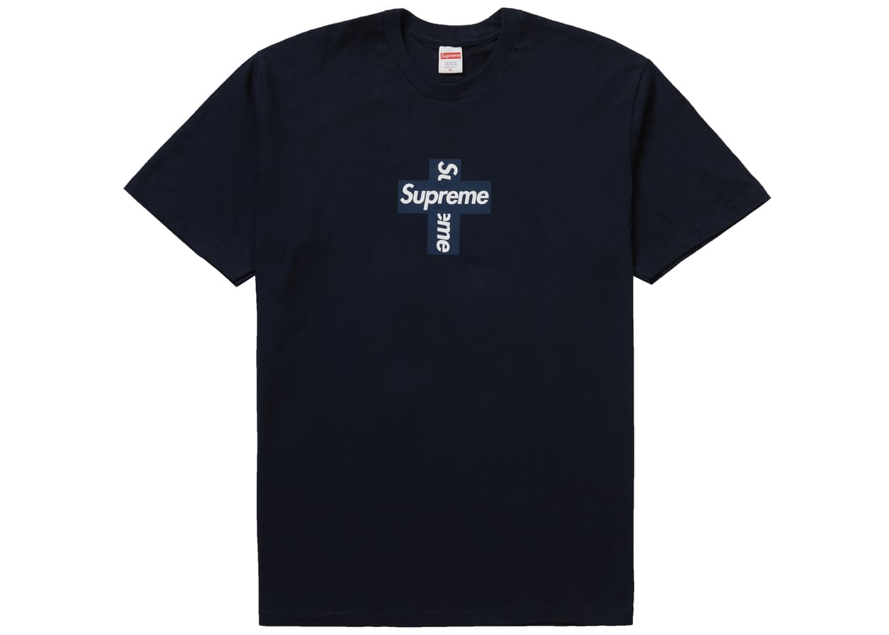 The Supreme Cross Box Logo Tee Navy was made available on the market on December 17th, 2020. It originally retailed at $38.