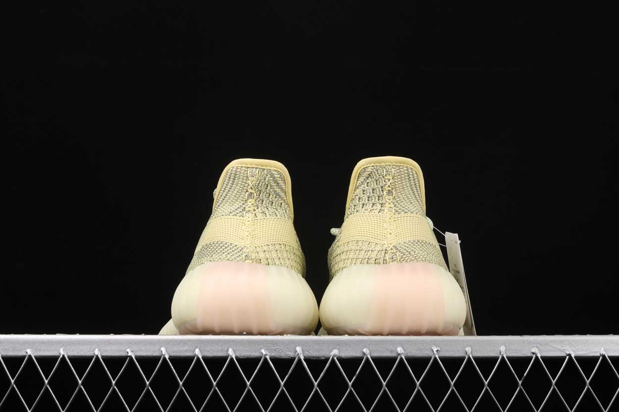 The adidas Yeezy Boost 350 V2 Antlia (Reflective) features a triple-Antlia Primeknit upper, with the Antlia palette taking on a soft yellow hue that is shot through with the typical gray seen on many Boost 350 V2 models. From there, the iconic “three stripes” of adidas cover the inner heel of the shoe, and “Boost” technology in a Gum-colored heel complete the design.