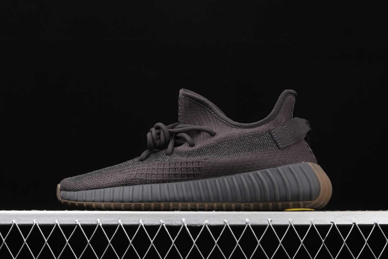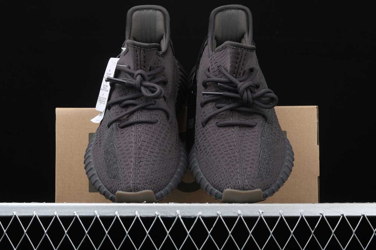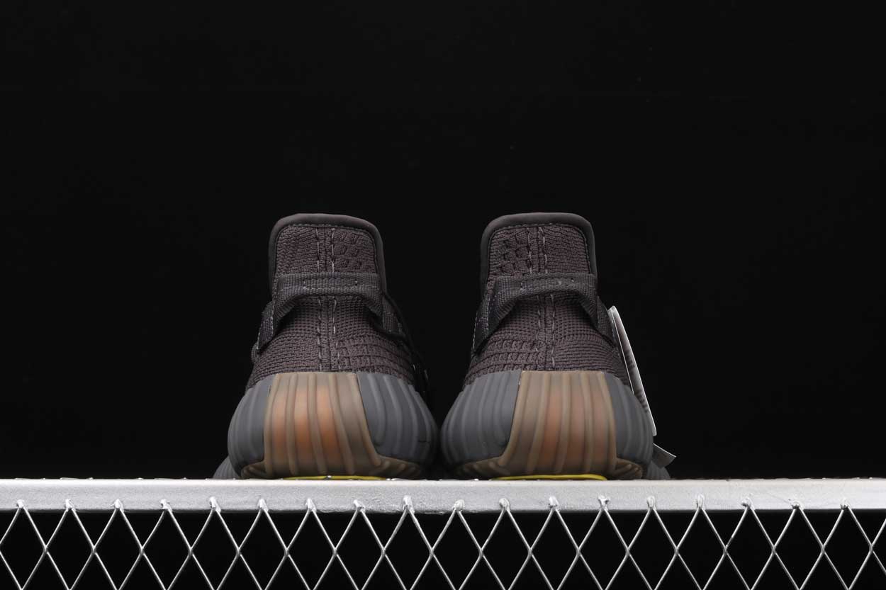 The adidas Yeezy Boost 350 V2 Cinder Reflective features a Cinder Primeknit upper, with almost the entirety of the construction featuring a dark grey color that evokes tones of charcoal, and it is broken up only by a deeper black stripe running through the center of the Primeknit. From there, a full midsole that features the patented Boost technology and a gum-colored outsole and bright yellow pad at the heel complete the design.