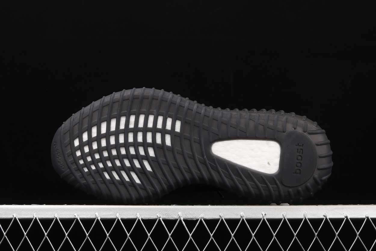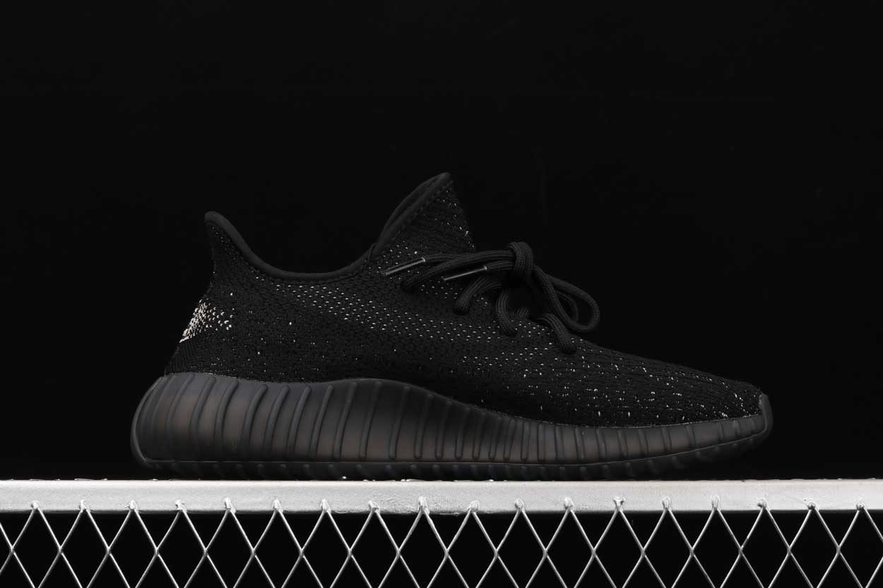 The adidas Yeezy 350 V2 Core Black White features a simple black Primeknit upper with “SPLY-350” text on a cream side stripe. From there, responsive Boost technology in the sole offers comfort and support.
