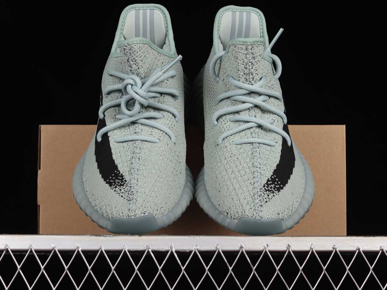 The Yzy Boost 350 V2 ‘Salt’, also referred to as ‘Jade Ash’, updates the lifestyle silhouette with a cooling color palette. Rope laces secure the mint green PK upper, featuring distinctive center-stitch detailing down the vamp. A contrasting streak of black adorns the lateral side, complete with signature 35O branding. Responsive cushioning arrives via a full-length B midsole, wrapped in a semi-translucent TPU cage and reinforced by a grippy rubber outsole.