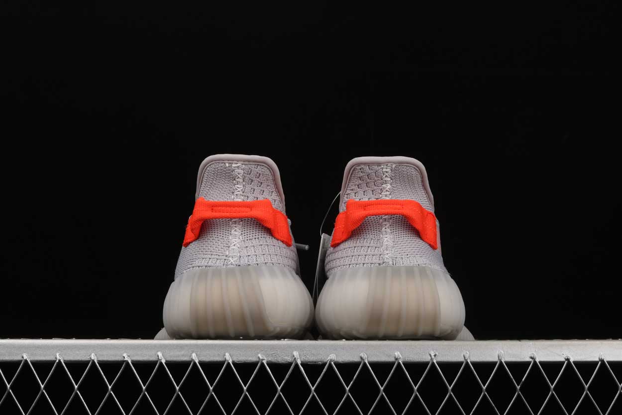 This Yeezy 350 V2 Tail Light is composed of a grey Pknit upper with a translucent outer side stripe that reveals hints of orange toward the heel of the upper. A translucent cushioned sole and grey interior completes the design. These sneakers released in February of 2020.