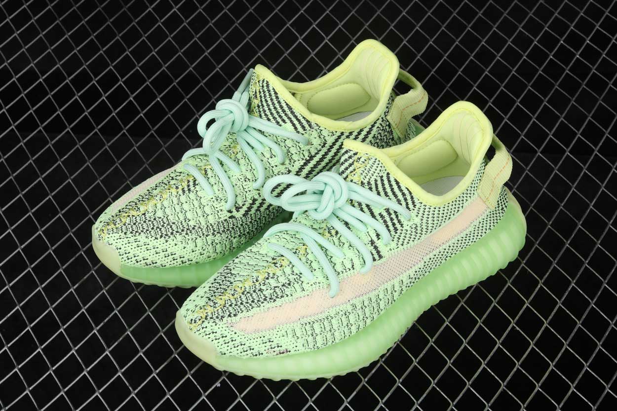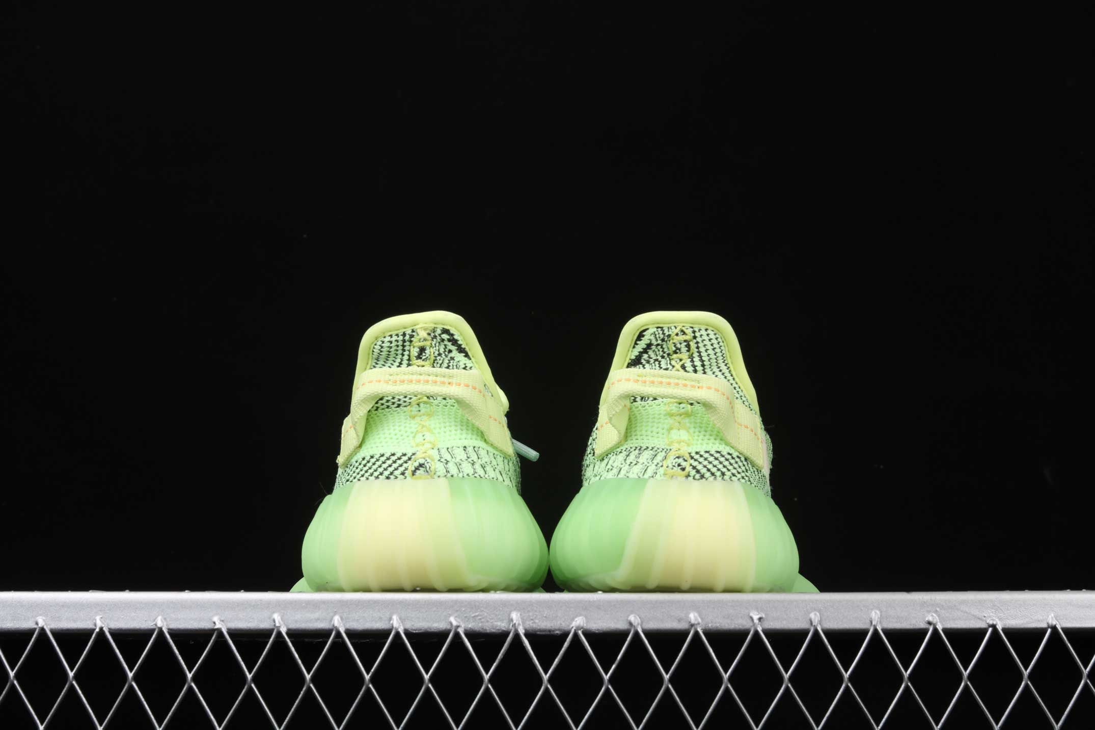 This Yeezy 350 V2 is composed of a Yeezreel upper and with black and grey accents ingrained in the upper. A translucent Yeezreel cushioned sole that glows-in-the-dark and side stripe completes the design. These sneakers released in December of 2019.